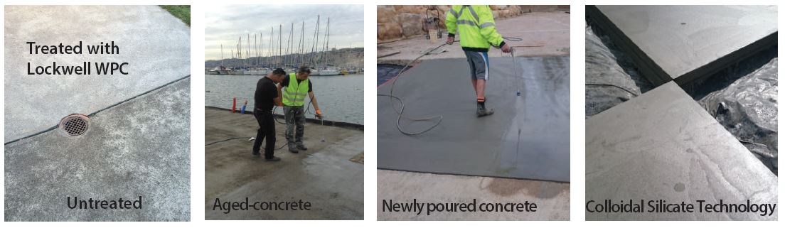 LOCKWELL WPC - Water Proof Concrete A spray applied colloidal silicate product that dramatically improves durability of underlying concrete and can reduce or even stop corrosion present on the concrete. Lockwell WPC is a high viscosity designed to permanently waterproof porous concrete.